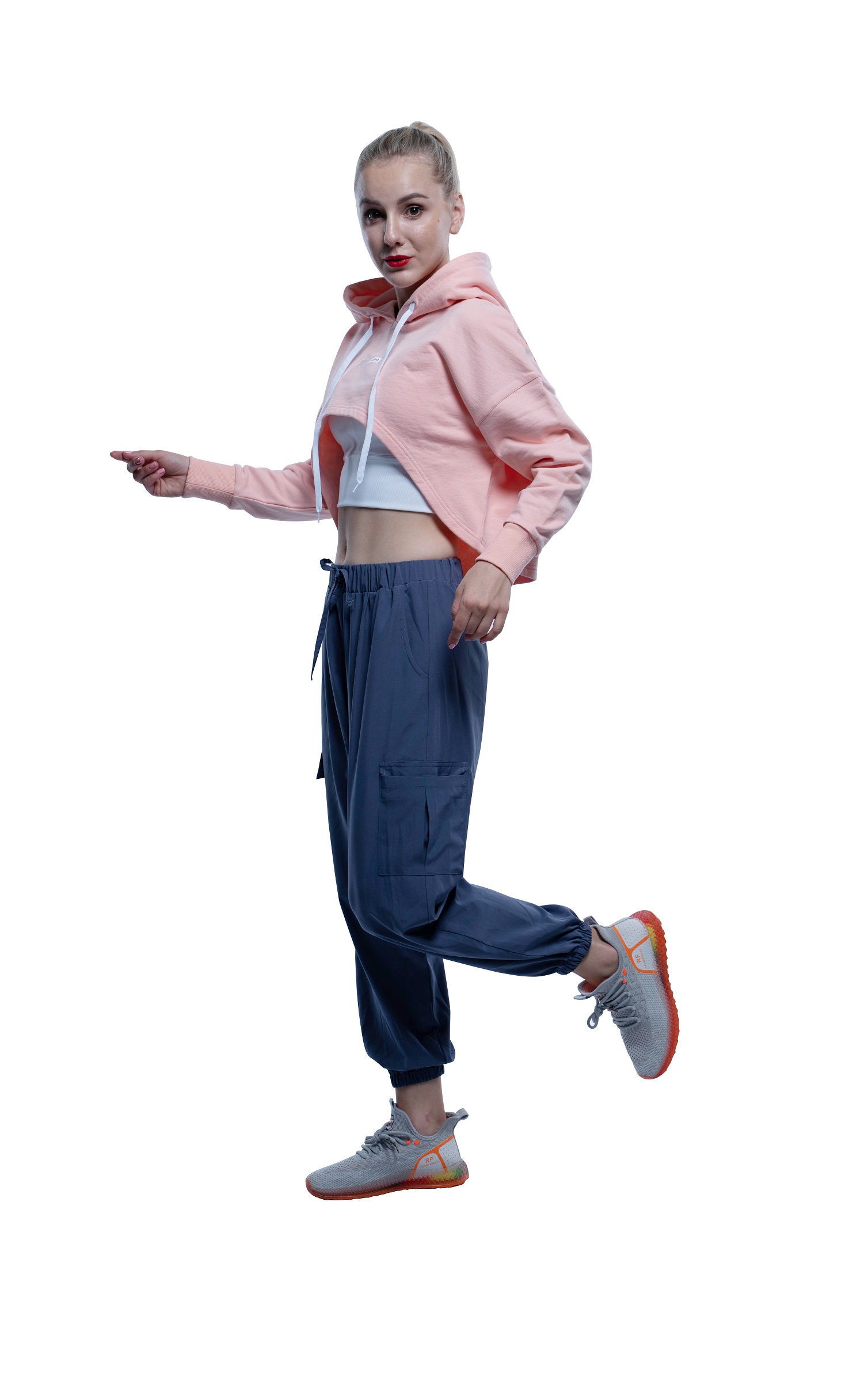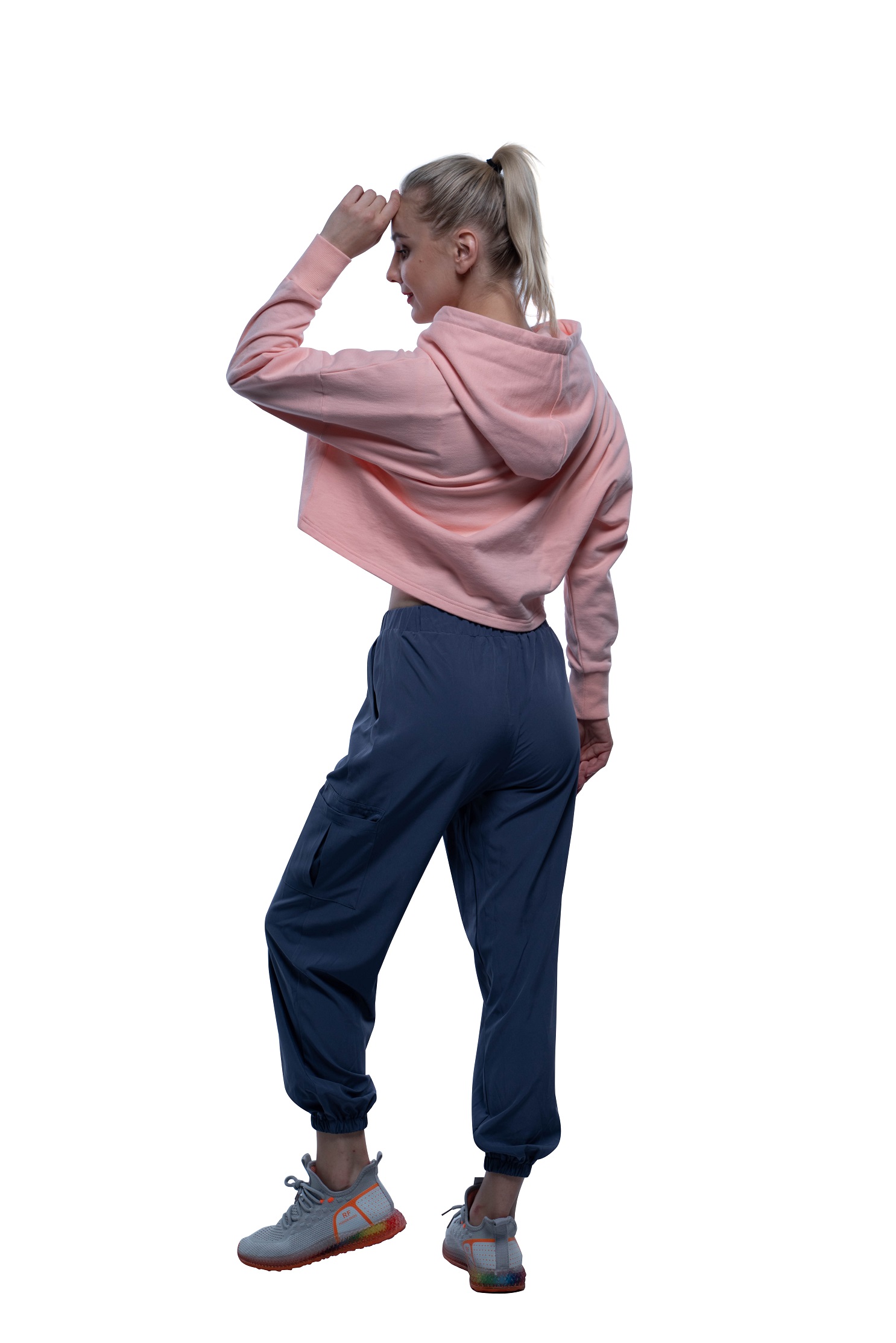 Top: The womens casual cropped hoodie is made of cotton& polyester mixed french terry 240gsm. IsoCool fabric and feature casual proportions that are ideal for warming-up or simply keeping cosy.